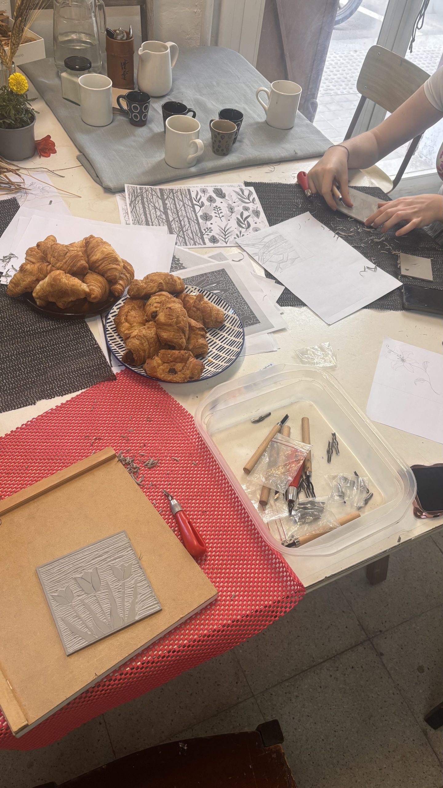 Porque el arte se disfruta mejor con un buen sabor de boca, haremos un alto en el camino. Entre tintas y gubias, compartiremos un desayuno sencillo pero mágico. Un momento para relajar la mano después de la talla, charlar y dejar que la creatividad fluya en un ambiente acogedor y lleno de luz.